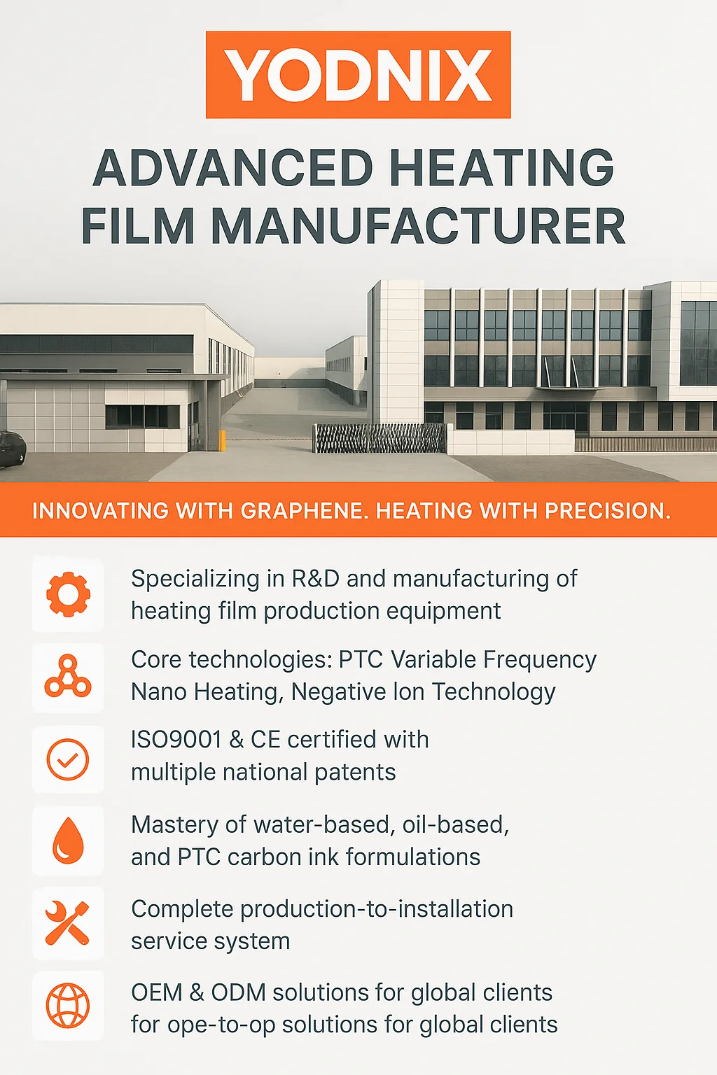 10.Our company is the source production factory of graphene electrothermal film, supporting customization: voltage, power, width,color, etc. providing free design services.